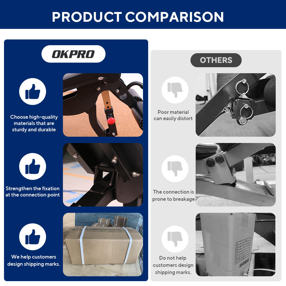 The OKPRO adjustable bench is an excellent choice for strength training, weightlifting, dumbbell exercises, and core training. While accommodating diverse training scenarios, it also supports logo customization, making it ideal for wholesale users like commercial gyms and distributors.