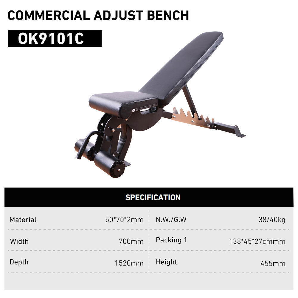 ● OKPRO's commercial adjustable bench offers a range of features designed to meet your needs. Engineered for strength and stability, it supports users of all fitness levels, from beginners to seasoned athletes.