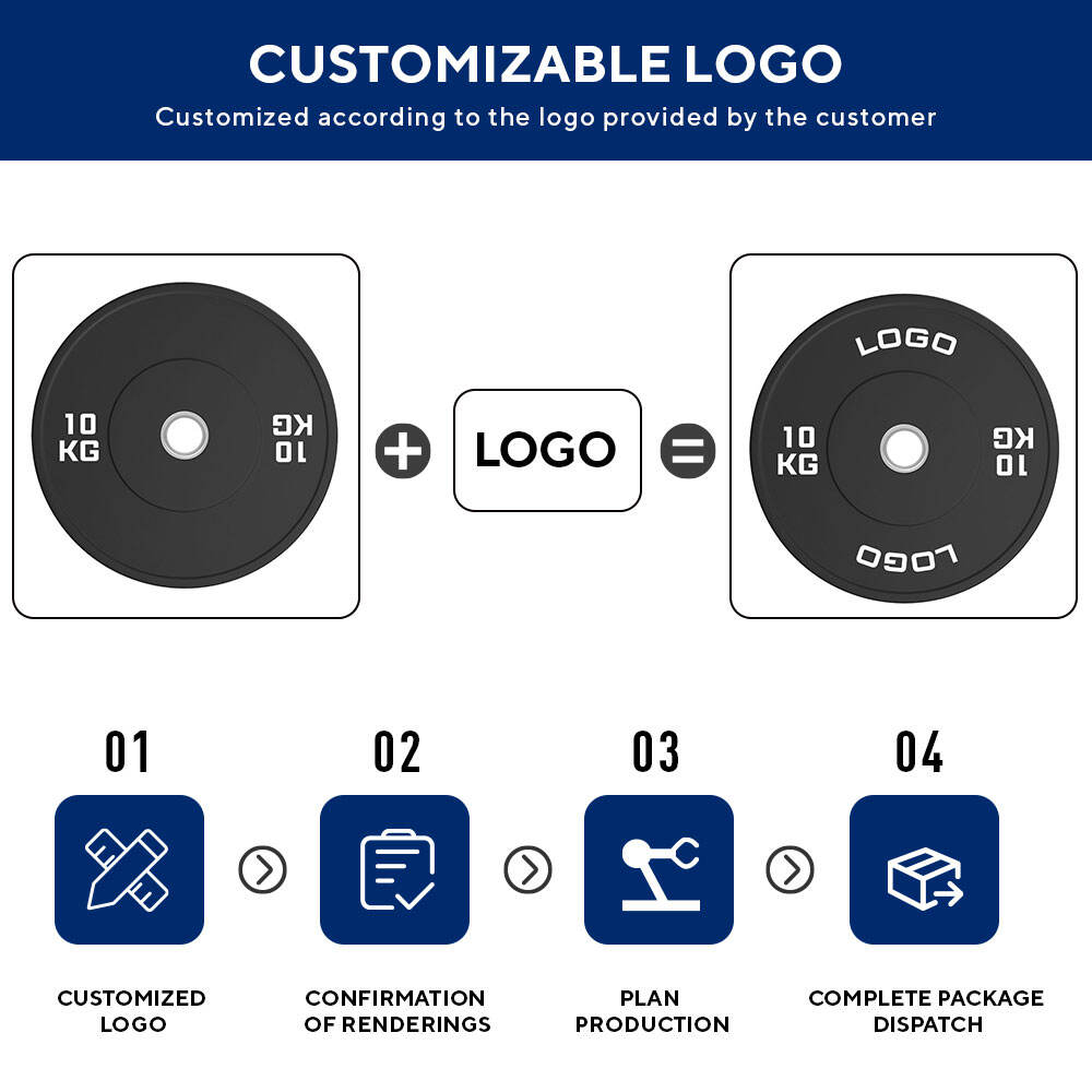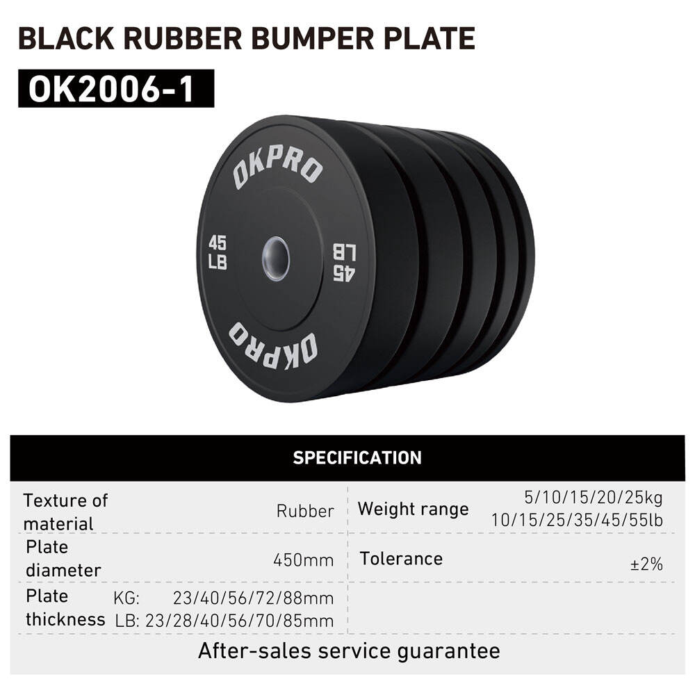 ● The Matte Black Finish of the OKPRO Bumper Plates is similar to that of competition level weight lifting plates. A clean, smooth finish will keep this plate looking amazing and last a long time.Customizable colors, logos, and packaging are available, improving efficiency for commercial gyms.