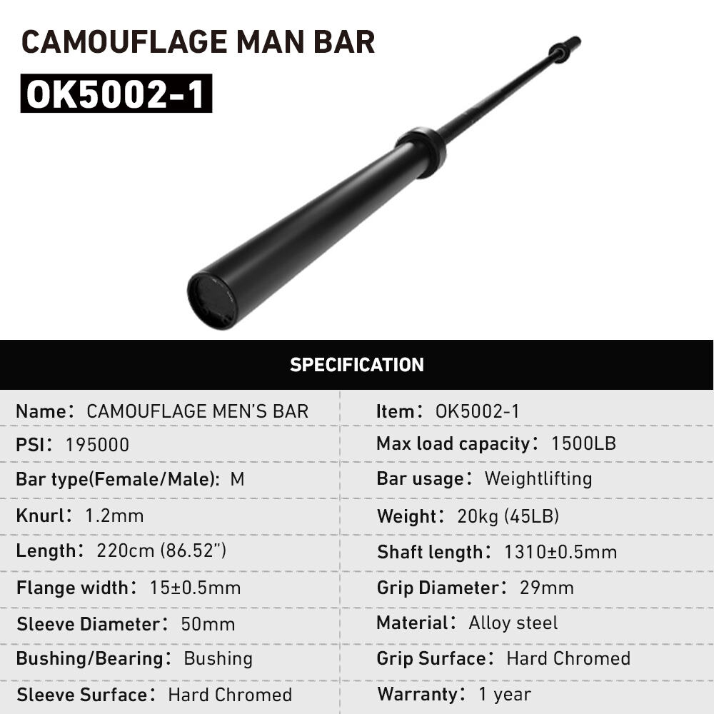 Camouflage Man Bar — Commercial Grade Olympic Barbell for Bulk Wholesale | Anti-Slip Knurling & Durable Camouflage Coating | OEM Logo Customization | Stable Performance for Gyms & Distributors