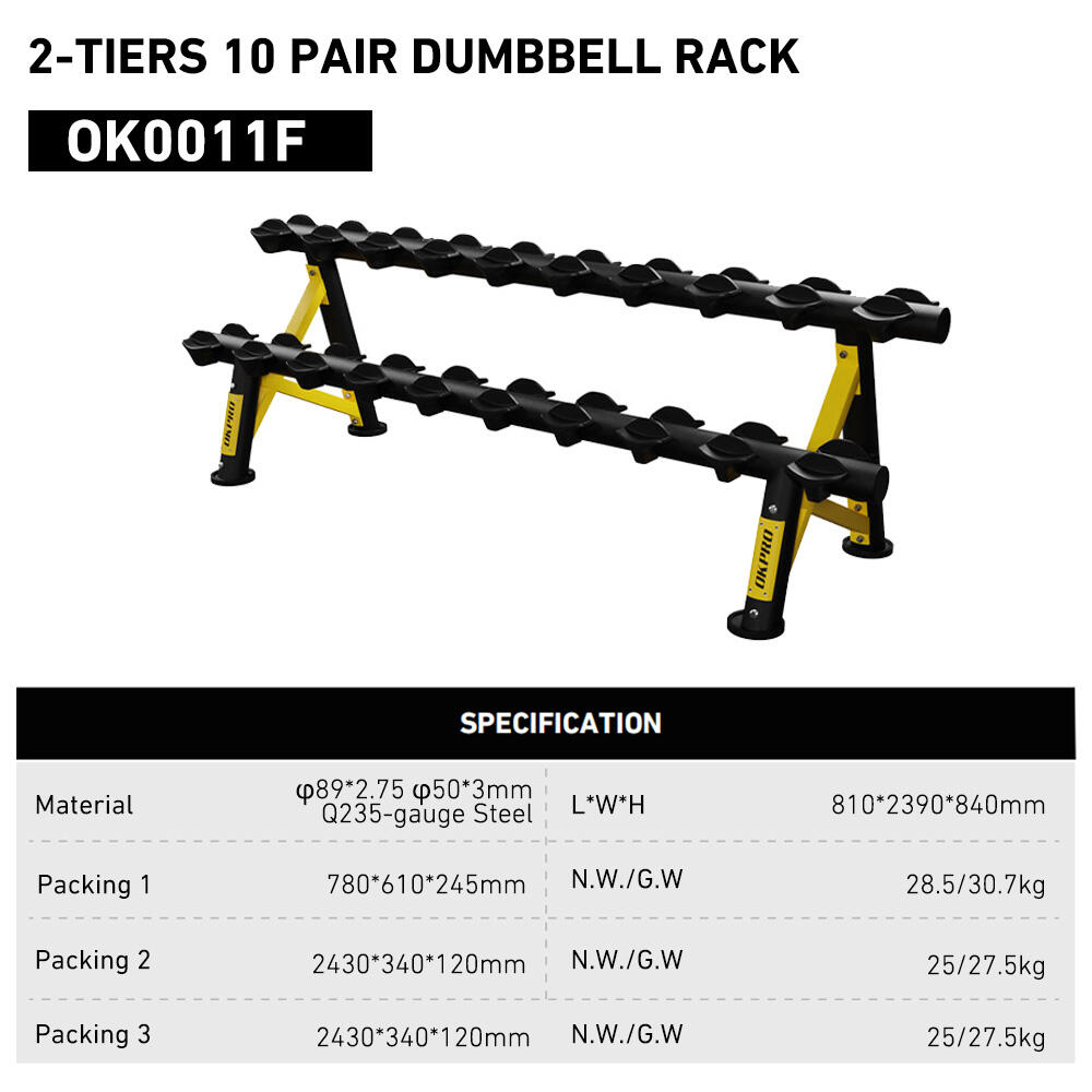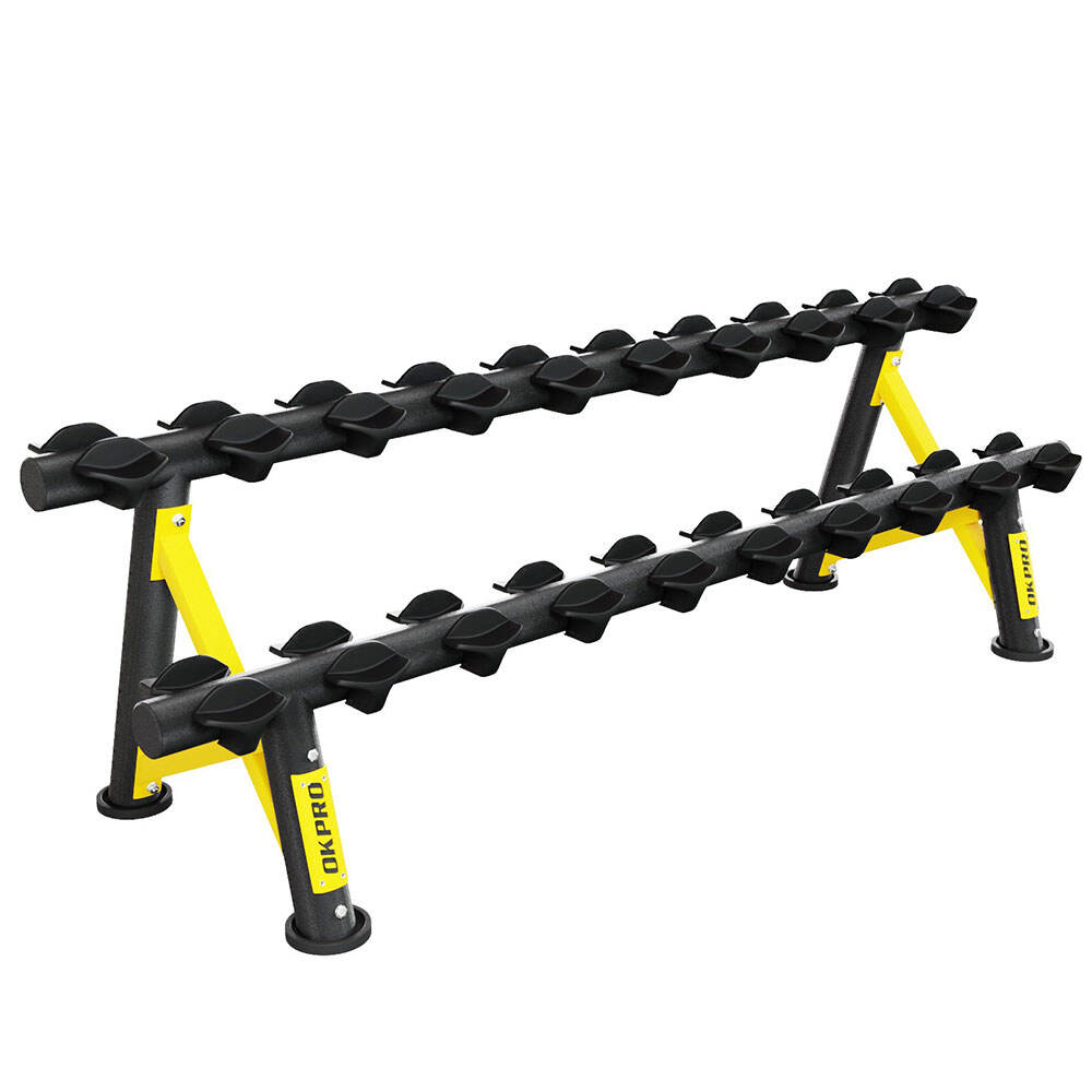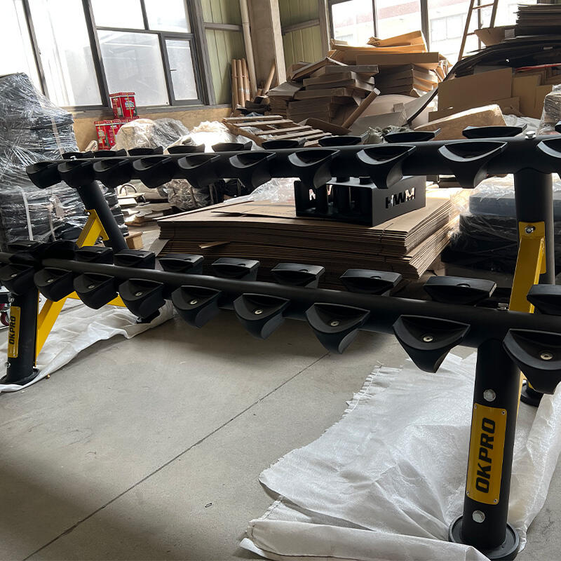 OKPRO has been specializing in the research and development and manufacturing of commercial fitness equipment since 2012. Our dumbbell rack not only features a clean, modern appearance but also perfectly complements our full range of strength training equipment, making it an ideal choice for creating a safe, efficient, and professional training environment. Whether you're a gym owner or a distributor, this dumbbell rack will help you optimize space management and enhance your training experience.