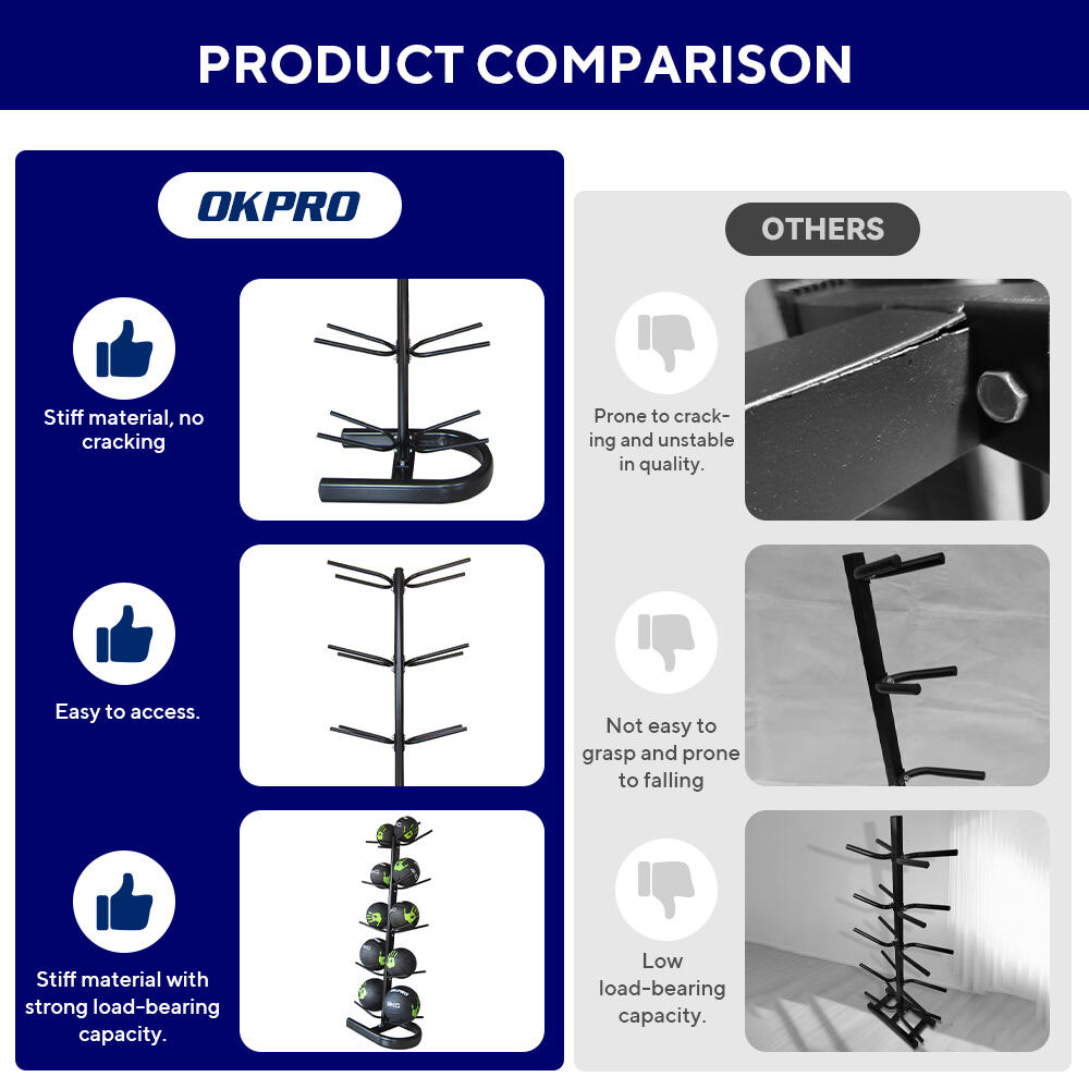 Constructed from high-strength steel, this medicine ball rack features a robust structure and superior load-bearing capacity, designed specifically for commercial gym environments. Its multi-tiered, vertical storage configuration effectively maximizes space utilization, allowing for the neat organization of medicine balls in various sizes; this ensures convenient access and enhances training efficiency. The surface undergoes wear-resistant, scratch-proof, and rust-proof treatments, making it ideal for high-traffic settings and ensuring a longer service life. The overall design is sleek and practical, facilitating easy installation and maintenance. It is an excellent choice for bulk purchasing by gyms, fitness studios, and distributors, and also supports OEM customization to meet diverse commercial requirements.