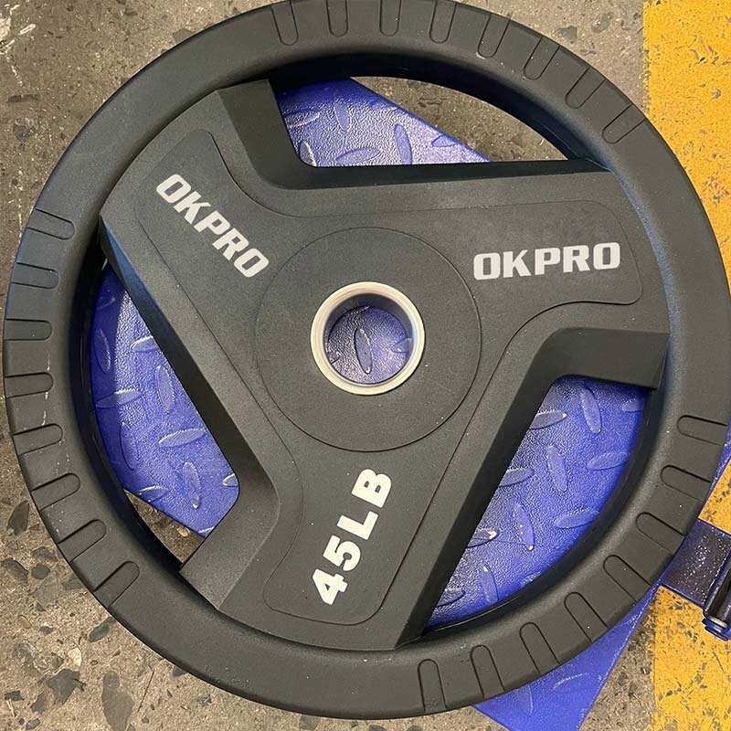 Commercial Urethane Bumper Plate | OKPRO Three-Grip Design for Strength Training
