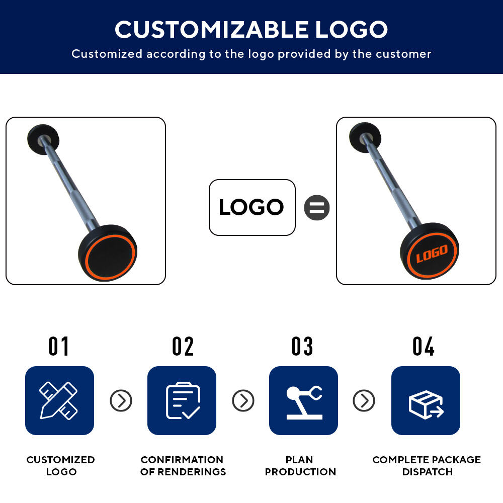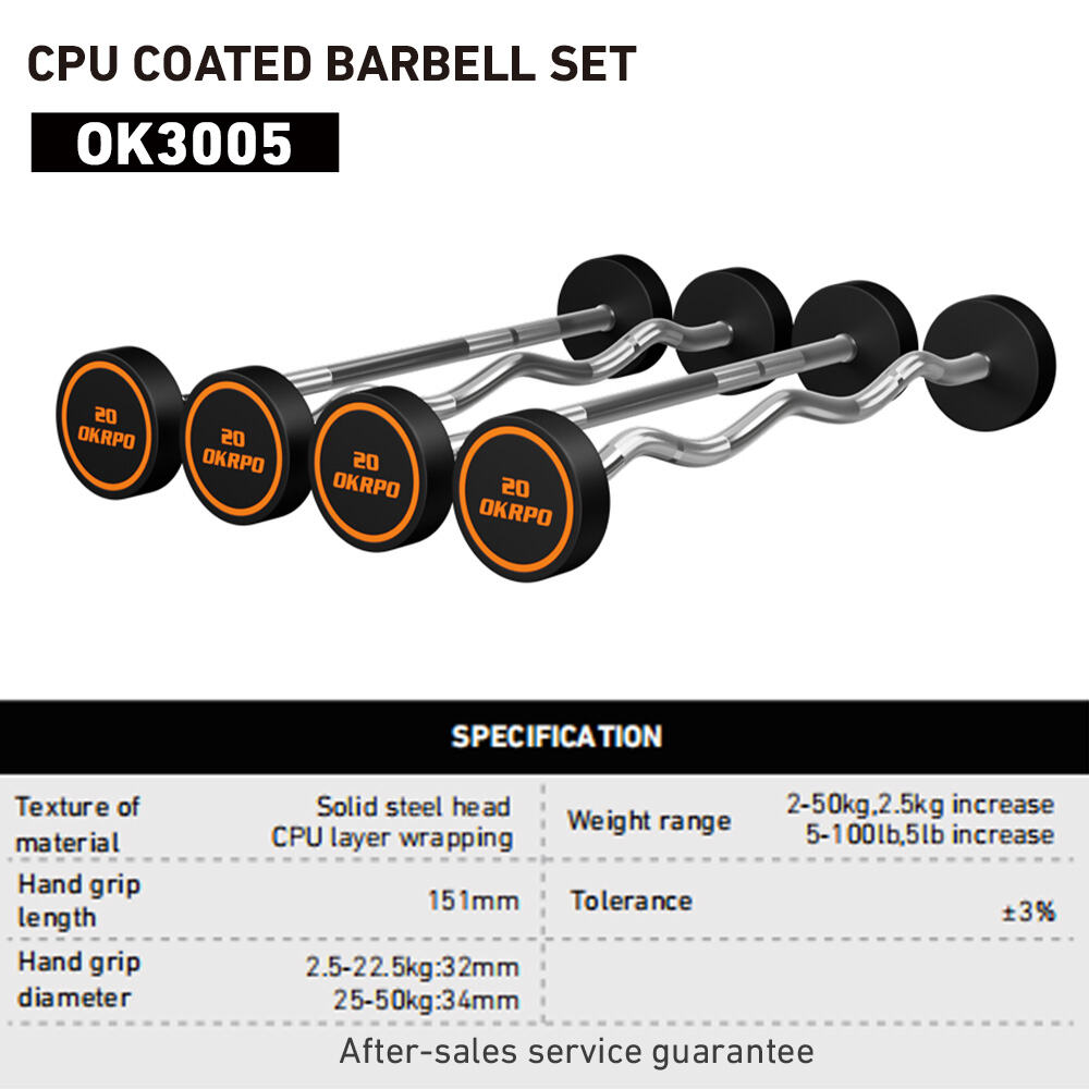 This CPU-coated barbell set features a ball-shaped head with a highly wear-resistant and rust-proof CPU coating, ensuring long-lasting shine, impact resistance, and durability. It's a cost-effective product. The handles feature a precision knurled design for a secure, non-slip grip, making it ideal for commercial gyms and high-frequency training environments. The product uses export-grade reinforced packaging, with each barbell individually packaged, supporting bulk purchases to reduce transportation and storage losses. The entire barbell set can be OEM customized, with brand logos or weight markings printed, meeting the procurement needs of global distributors and chain gyms.