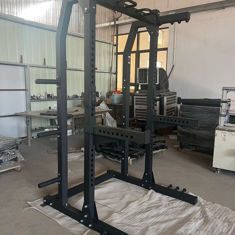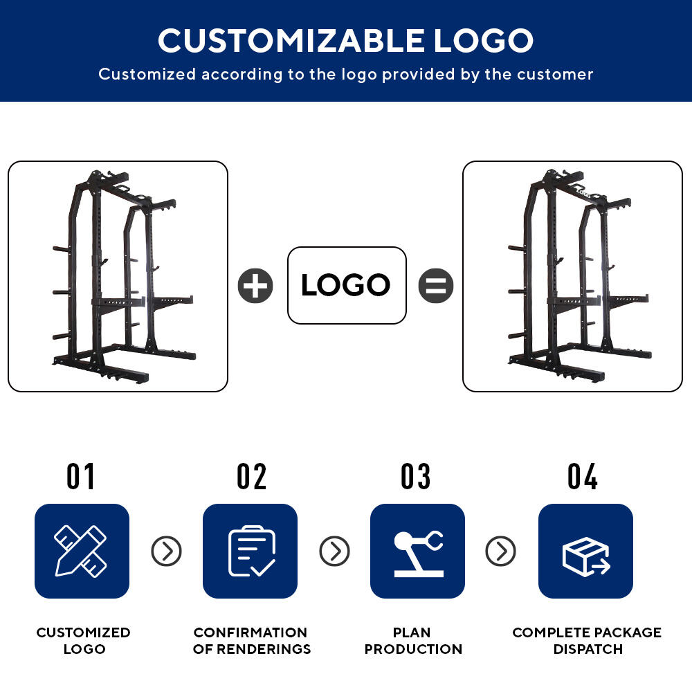 The main body is constructed with high-strength commercial-grade steel, featuring a stable base structure and strong load-bearing capacity, enabling long-term heavy weight training such as squats, bench presses, and shoulder presses. The load-bearing parts of the half-frame are reinforced and precision-welded, ensuring stability and safety even under high usage, reducing wobbling and maintenance frequency, making it highly cost-effective.