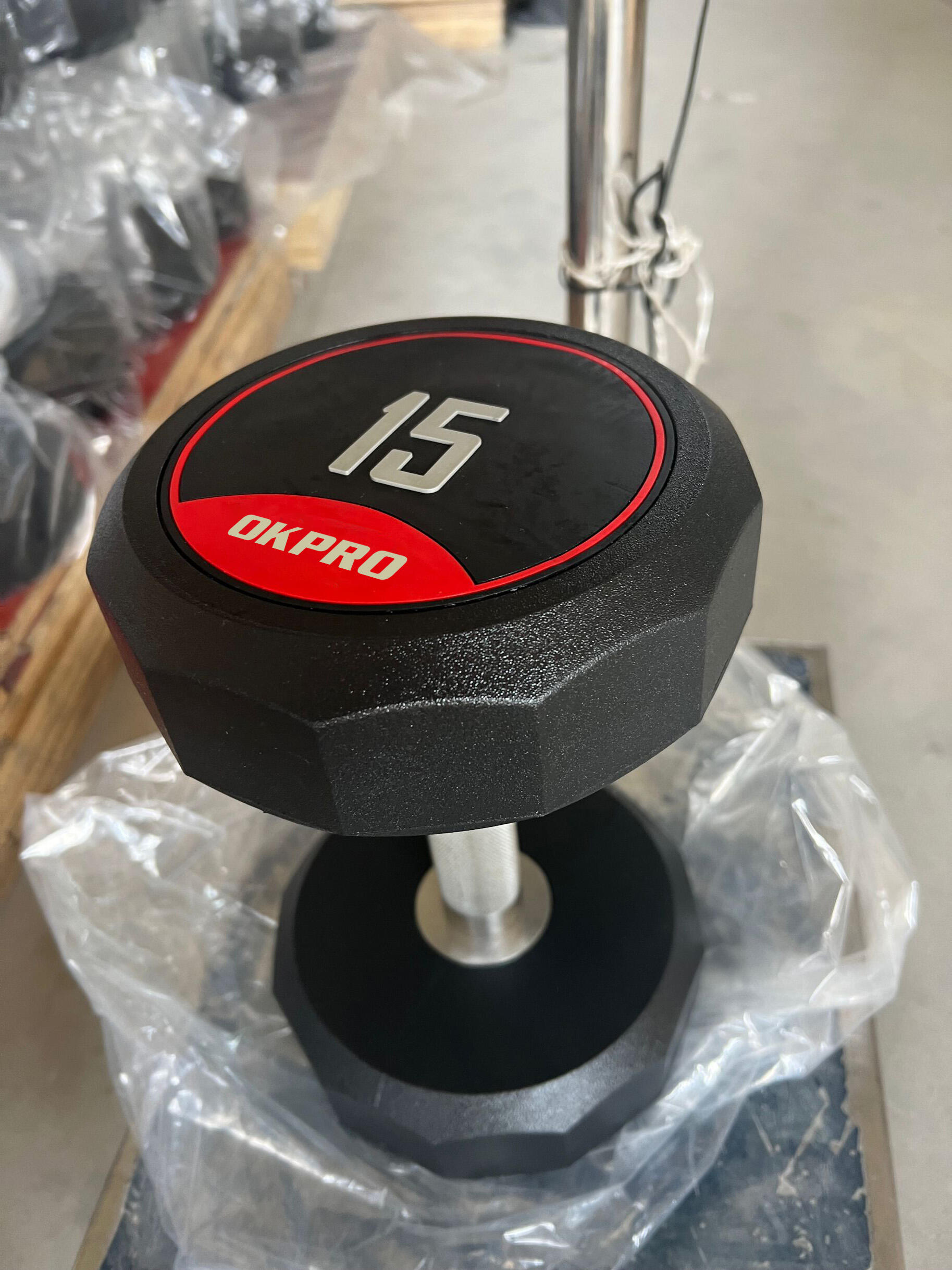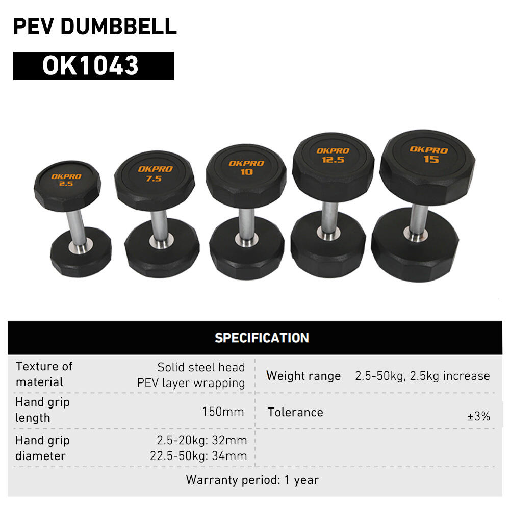 OKPRO decagonal PEV dumbbells combine innovative design with commercial-grade durability, providing a high-quality solution for professional gyms and dealers. Constructed from 100% solid steel, they are stronger than traditional cast iron dumbbells, resistant to cracking and deformation, and maintain stable performance even during high-frequency, heavy training.