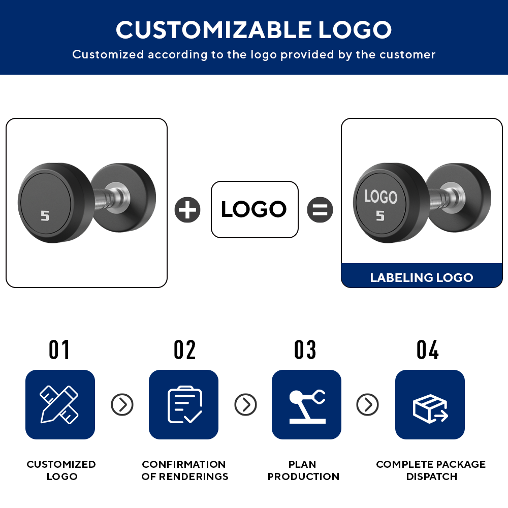 Our rubber round dumbbells are made from high-quality rubber and are essential for commercial gyms. Available in bulk at competitive prices, they are safe and environmentally friendly. They provide a secure, non-slip grip, protect floors and equipment, and are easy to clean. Custom logos are also available for bulk orders.