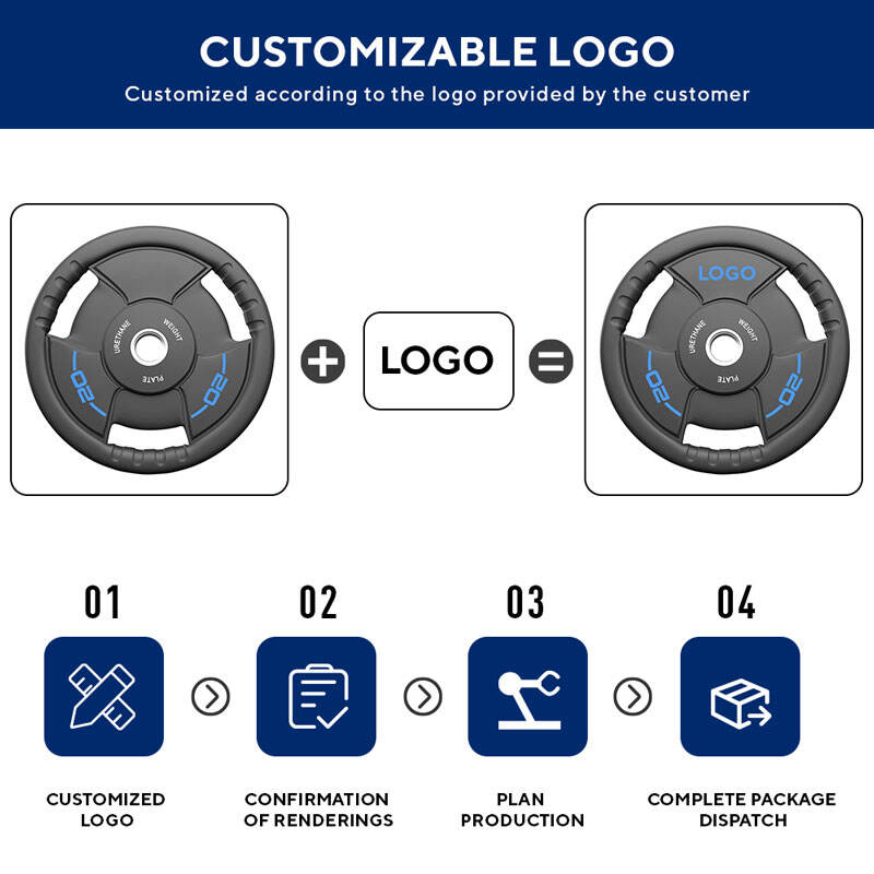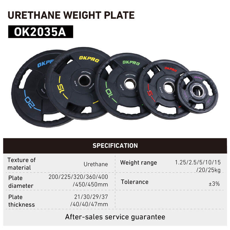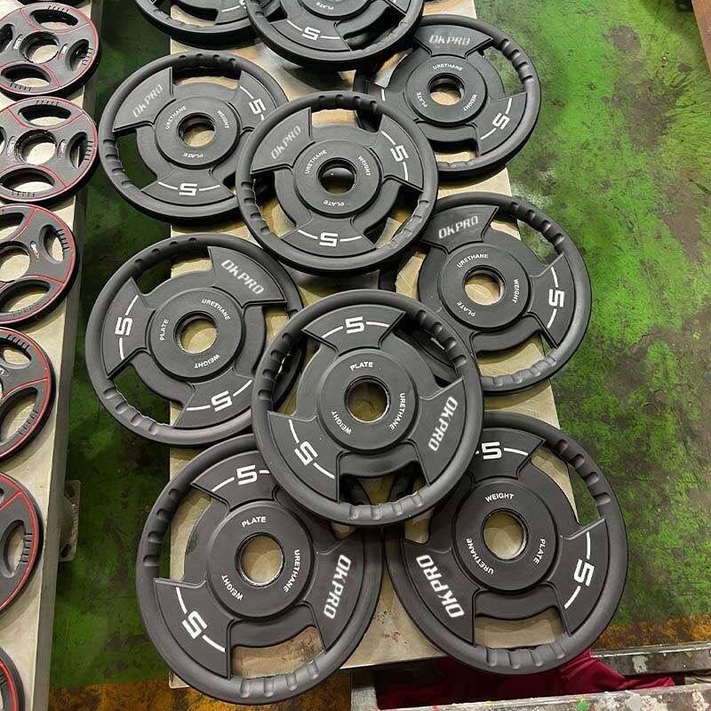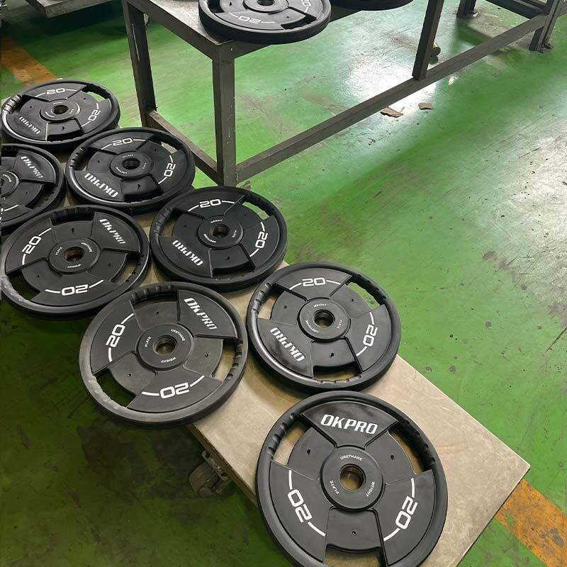 OKPRO urethane plates are available in a variety of color-coded weights and branding options, making them easy to organize and identify, enhancing workout efficiency. Custom logo printing and OEM/ODM options are also available to help gyms and distributors enhance their brand image.