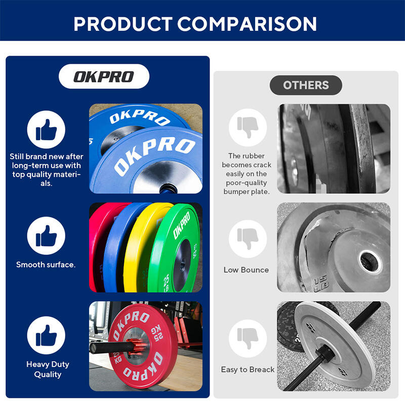 Competition Rubber Bumper Plates are available in a variety of weights and colors for easy identification and combination, making them suitable for commercial gyms, strength training centers, CrossFit training centers, and high-intensity home training. Bulk purchasing is supported, balancing cost-effectiveness with professional quality, providing dealers and commercial customers with a flexible and economical purchasing solution. Whether used for competitive competition, strength training, or daily high-frequency training, this barbell plate provides reliable performance and an excellent user experience, making it an ideal choice for commercial and professional scenarios.