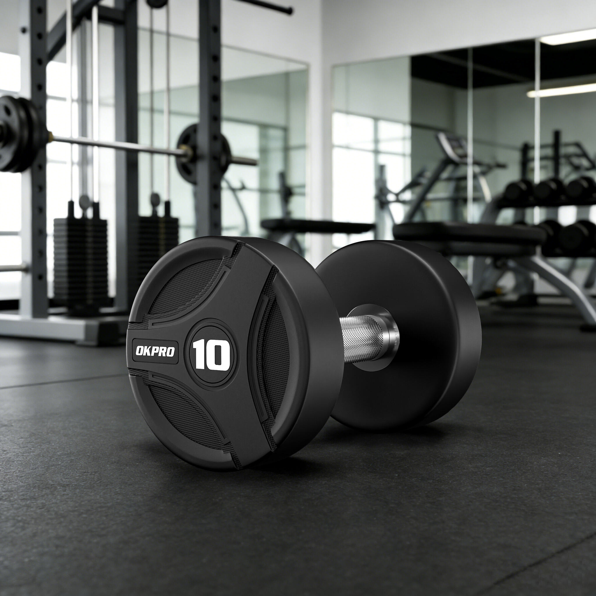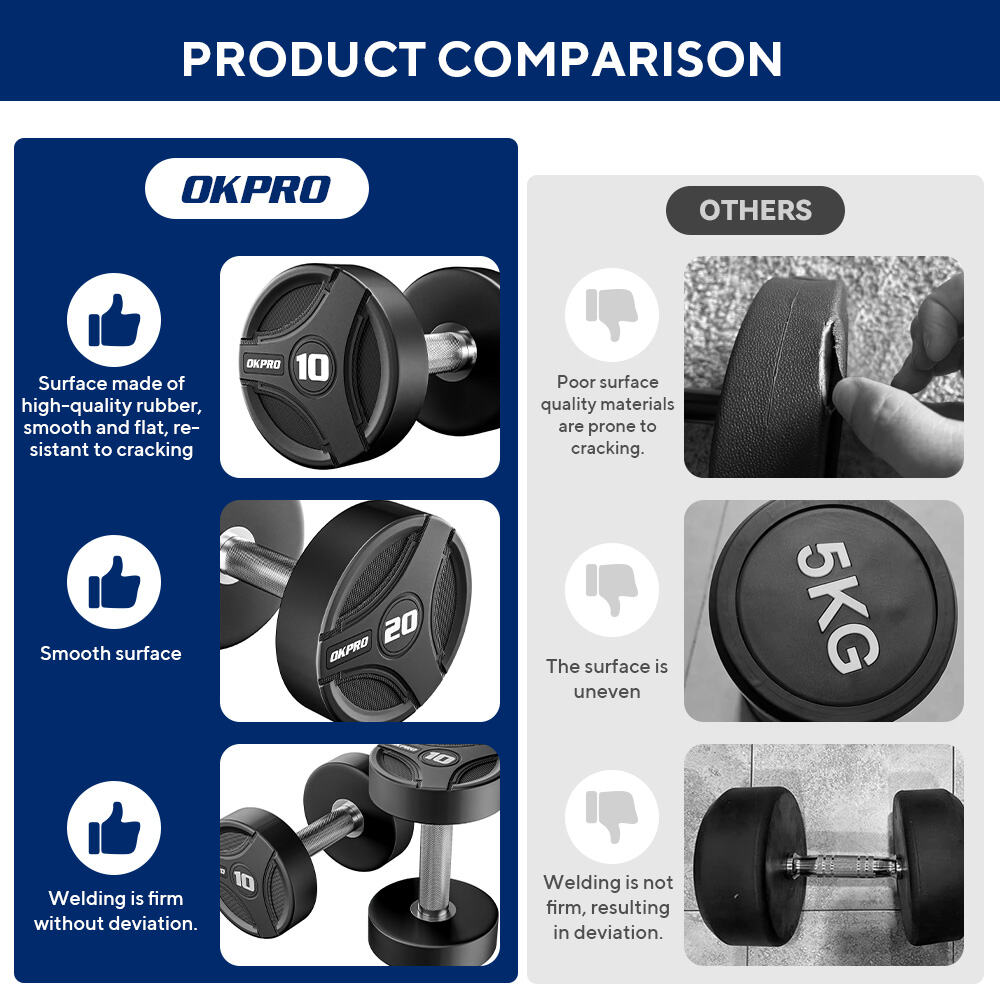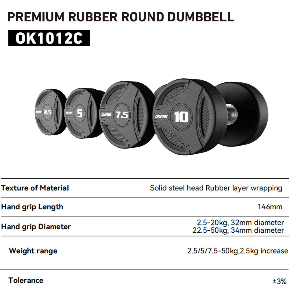 This Rubber Dumbbell is designed specifically for commercial gyms and fitness equipment wholesalers, representing a new design and series from our 26 years of innovation. The new dumbbells feature sleek, streamlined lines, creating a visually unified look when displayed on a dumbbell rack. The brand is clearly visible, maintaining a clean and high-end image. The design utilizes a high-density rubber coating and a high-strength steel core structure, effectively enhancing durability and overall stability, making it suitable for high-frequency commercial environments. The handles feature a finely knurled finish, providing a secure and non-slip grip while ensuring safety and comfort to meet varying training intensities. The precise weight and uniform appearance make it ideal for set purchases and bulk orders. OEM/ODM customization services are available, allowing us to customize brand logos, weight markings, and packaging solutions to meet specific customer needs. Suitable for long-term supply to gym chains, distributors, and brand owners.