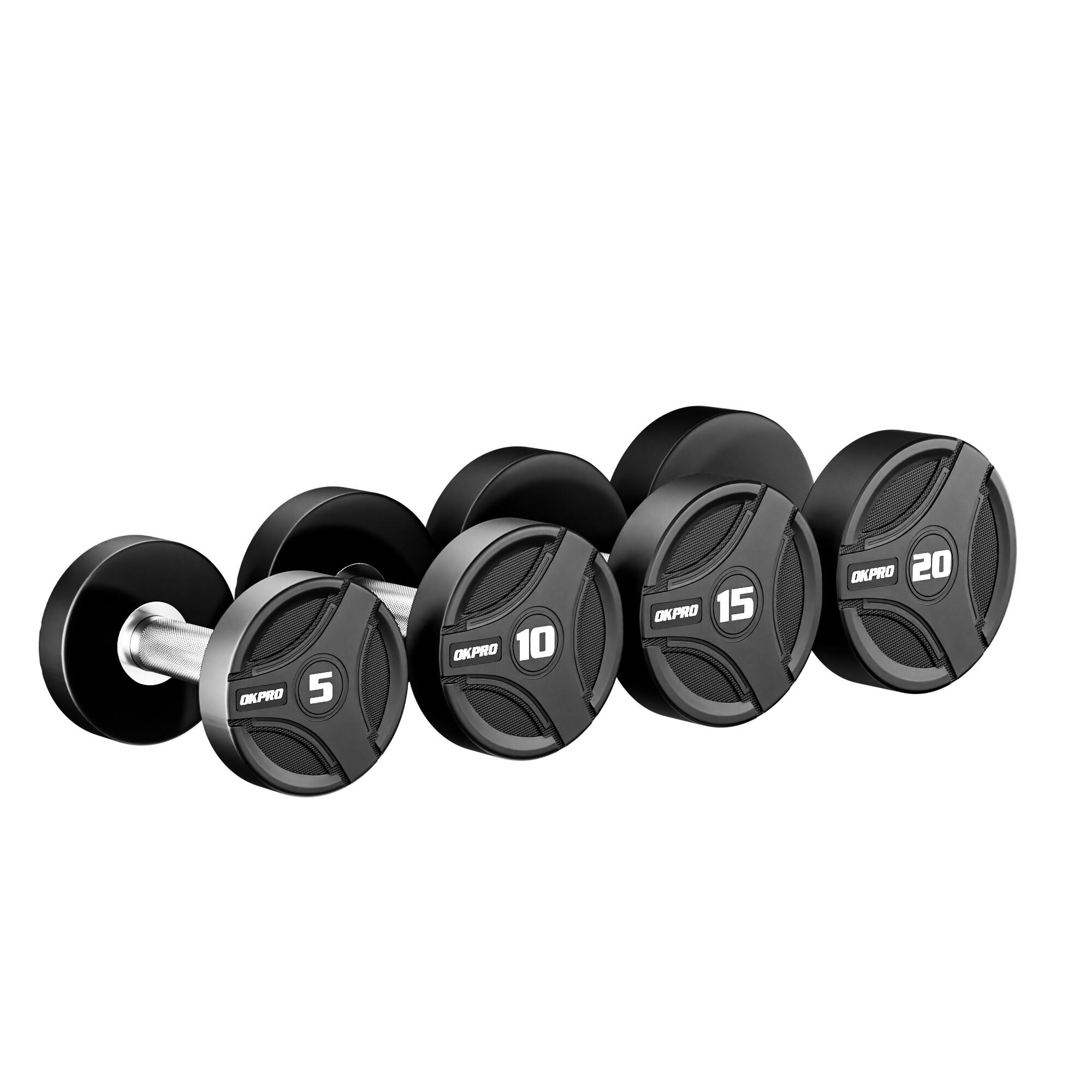 This dumbbell is a newly designed product from 2026. The ball head features clean, smooth lines, creating a visually unified look when displayed on a dumbbell rack, giving it a high-end feel for gym chains, project owners, and brand clients. The ball head end is a complete circular flat surface, clearly displaying the brand without appearing cluttered. Specifically designed for commercial gyms and fitness equipment wholesale markets, the overall structure uses a symmetrical circular dumbbell head with a high-density rubber coating, ensuring even stress distribution within the internal steel core. Compared to hexagonal or irregularly shaped heads, it is less prone to stress concentration during drops and impacts, making it more drop-resistant and durable, ideal for high-frequency use in commercial gyms.