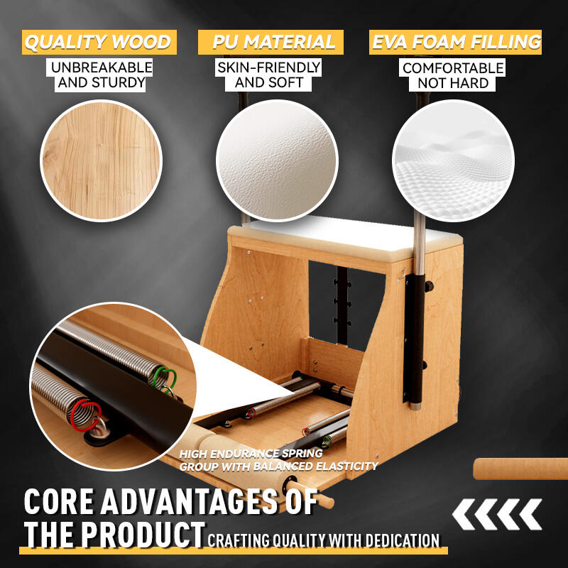 Want to enjoy a professional Pilates workout? The OKPRO Wooden Pilates Universal Chair is your ideal choice! Crafted from high-quality solid wood and a sturdy metal structure, it features an adjustable resistance system and multi-functional pedals, making every workout safer and more effective. Whether you're working on core strength, full-body muscle development, or improving flexibility and posture, it's easy to achieve, helping you scientifically shape your ideal body.