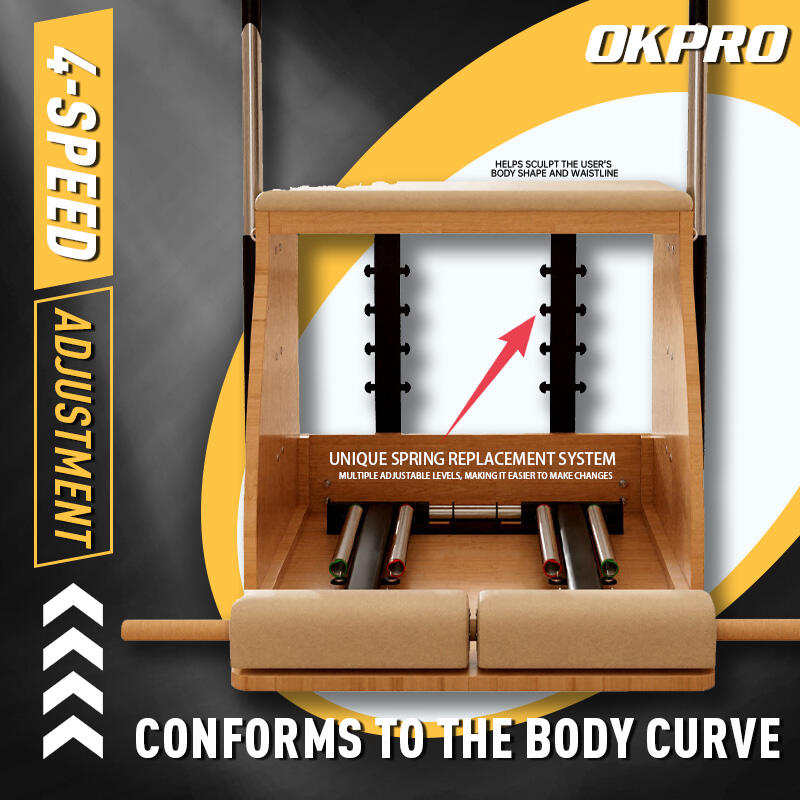 Choose the OKPRO Wooden Pilates Universal Chair to make every workout an efficient, professional, and enjoyable experience. The perfect combination of professional design, exquisite craftsmanship, and durable materials not only enhances training results, but also adds a professional and elegant touch to your fitness space.